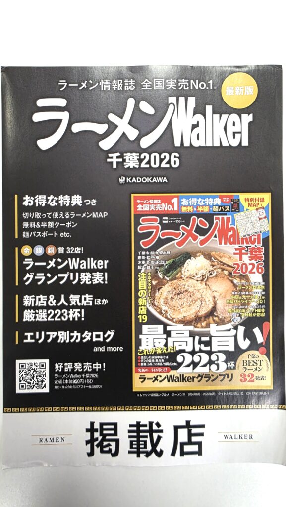 ラーメンウォーカー千葉2026掲載🍜 2025.12.24 いつもご愛顧いただきまして誠にありがとうございます。 ます嶋が、ラーメンウォーカー千葉2026に掲載いただきました! 発売中ですので、もし見かけましたら是非ます嶋の掲載ページを探してみてください♪